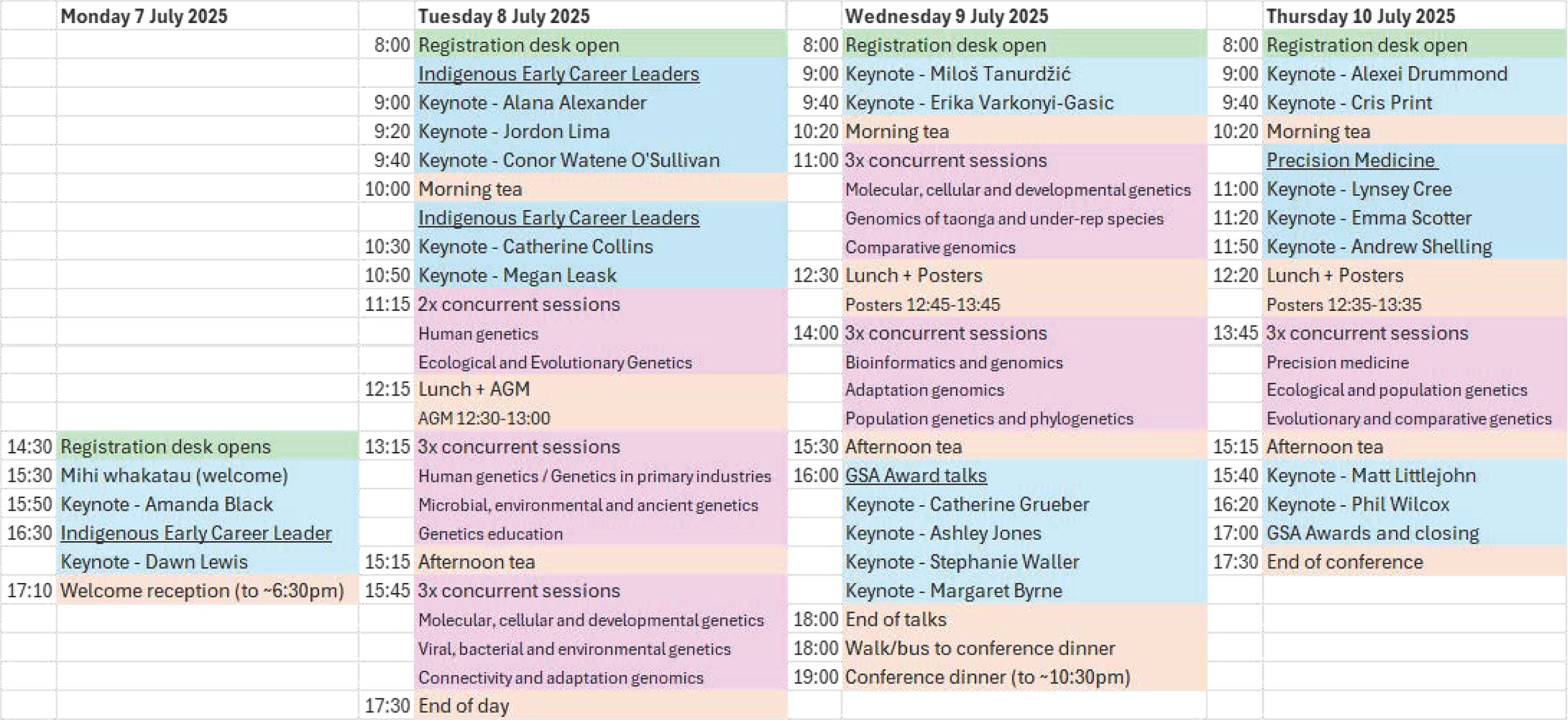 The conference program will commence early afternoon on Monday 7 July, and conclude by 5:30pm on Thursday 10 July. The conference dinner will be held on Wednesday 9 July.